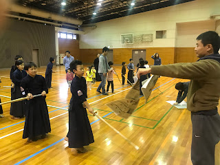 平成30年度 草津尚武館 合宿 4月 26, 2018 4月14日(土)~15日(日)希望ヶ丘青年の城にて 合宿を行いました。 本年度も午前中は、草津剣道連盟の合同稽古に参加し、午後から青年の城に集合しました。 まずは、馬渕先生からの座学から始まり、体の使い方やストレッチを行ったりしました。 その後、夕方までみっちりと稽古をし、最後に新聞切りをしました。 しっかり稽古をした後は皆で食事をし、お待ちかねの楽しいレクリエーションの時間です。 毎年恒例となっている「叩いてかぶってじゃんけんぽん!」は、先生対決もあり大いに盛り上がりました。 二日目、午前中は、紅白戦と勝ち抜き戦を行い、午後は、ドッジボール・大縄跳びをしたりし、楽しく遊んでから終了となりました。 ご参加頂いた先生方、希望が丘青年の城の職員の皆様、育成会の皆様二日間ありがとうございました。お疲れ様でした。 共有 リンクを取得 Facebook × Pinterest メール 他のアプリ コメント